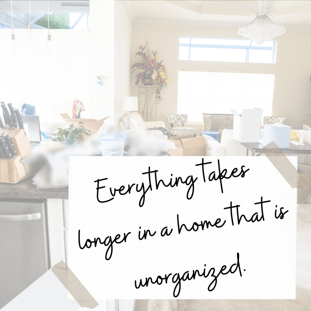 Everything takes longer in a home that is unorganized and messy. Simple tasks like preparing a meal, folding laundry or tidying a bedroom are all of a sudden impossible to get done and emotionally overwhelming. We are just spinning our wheels. The mess just keeps getting bigger and the time we know it will take to clean up keeps getting longer and longer. One mess rolls into another and before we know it it’s out of control. Again, no one wants to feel this way.