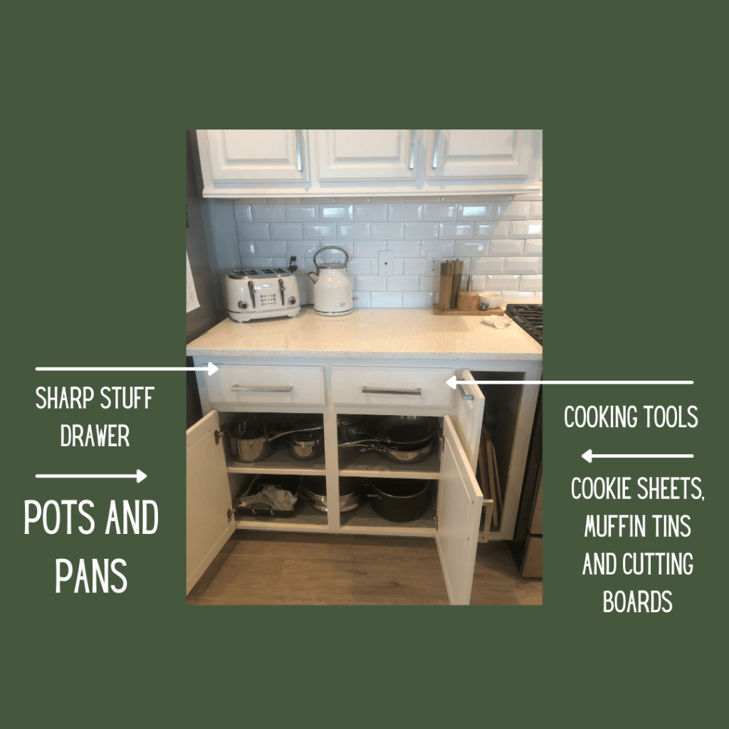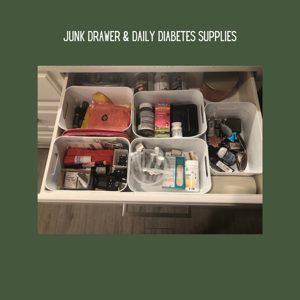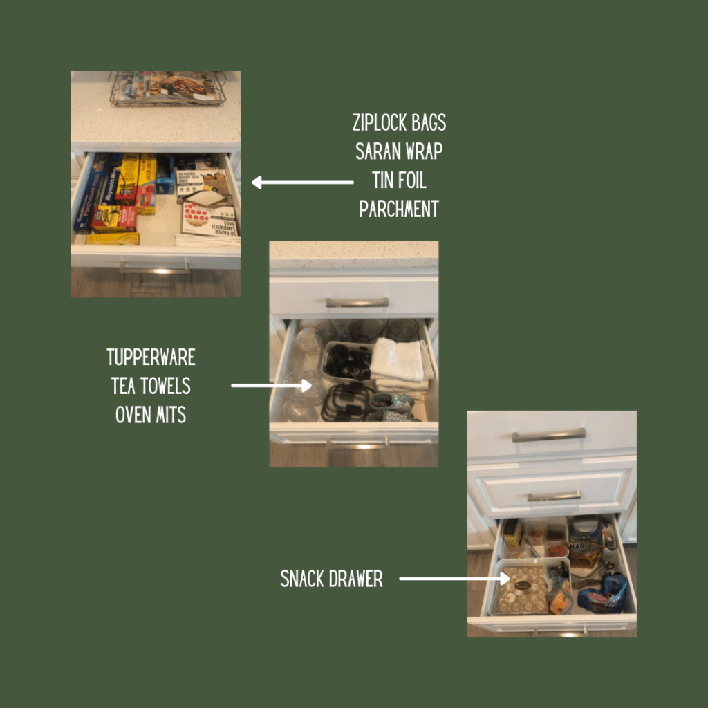 I know I am using an entire drawer for treats. My youngest was diagnosed with Diabetes in May of 2020. I used to keep treats up high in a container in the pantry but we moved it to a drawer so she could easily get a treat if her blood sugars are low. If I still had little kids at home I would put kids dishes, coloring books and some small toys in this drawer.