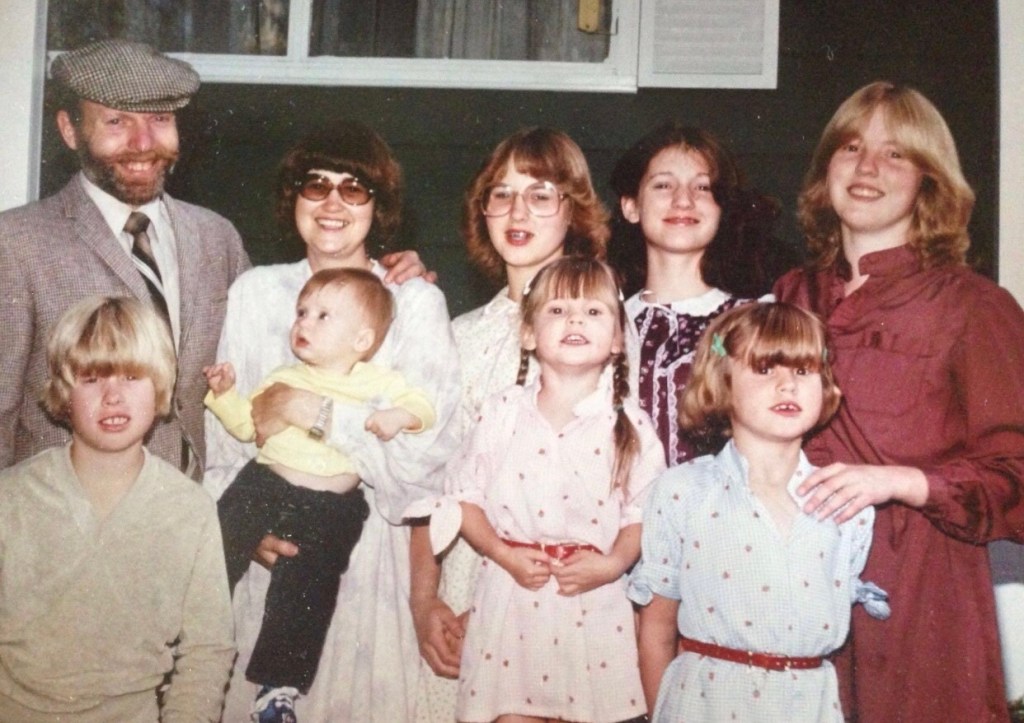 Our house was a split-level. Just 1800 sqft. You would walk in the front door and you were in the entryway. There were stairs going up to the main level and stairs going down to the basement. In the basement my dad built rooms, closets, built in beds, desks and shelves. There were three bedrooms, a small bathroom, Laundry room, cold storage, sewing area, TV room and a playroom under the stairs. My dad made good use of the space. The basement was cold so we had a fire in the fireplace a lot in the winter. Some time in the late 70s my parents decided carpet in the basement would warm it up. They collected carpet samples and scraps from stores all over town and laid a patchwork of colors and styles together. They were so resourceful! On the main level we had a living room, dining room, kitchen, full bath, three bedrooms and my parents had a half bath in their room. Did I mention there are seven kids in my family?